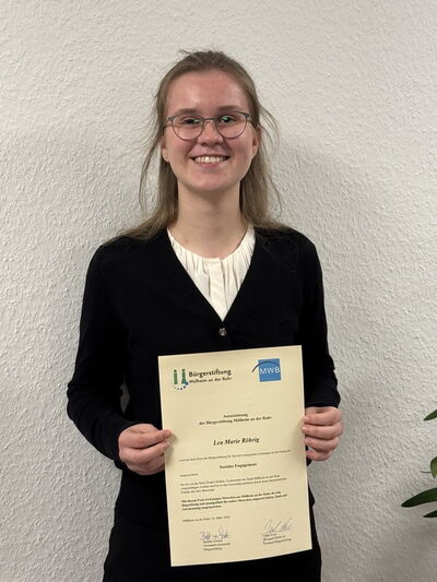 Die Karl-Ziegler-Schule freut sich über eine besondere Auszeichnung: Unsere Schülerin Lea Röhrig wurde von der Bürgerstiftung Mülheim an der Ruhr in der Kategorie „Soziales Engagement“ geehrt.