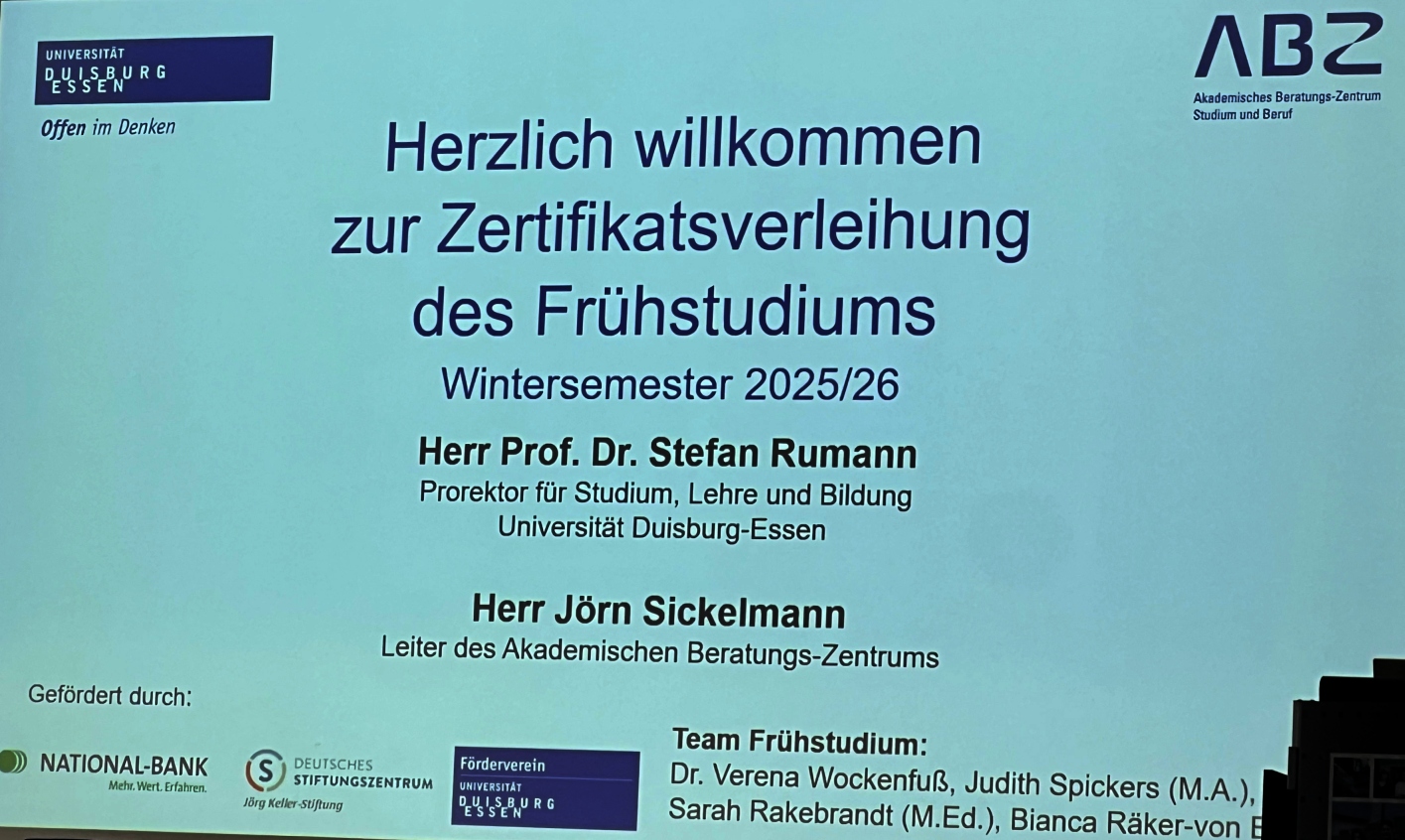 Zertifikatsfeier des Frühstudiums an der Universität Duisburg-Essen – Ein besonderer Tag für unsere Schülerinnen und Schüler